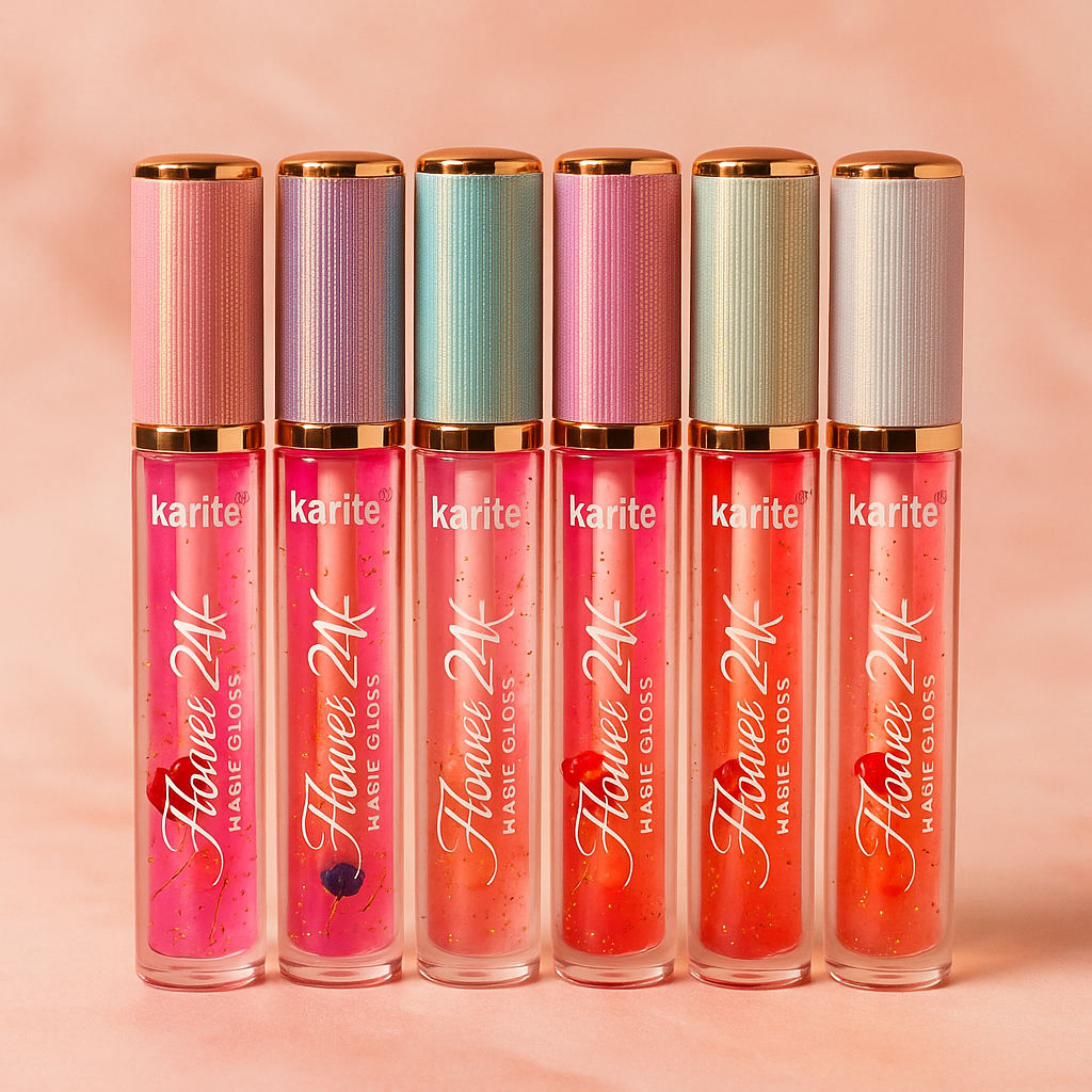 Add a pop of shine and magic to your lips with Karité Flower 24K Magic Lip Gloss. Each tube is infused with 24K gold flakes and real dried flowers, giving you not just a glossy finish but a dreamy, luxurious vibe.