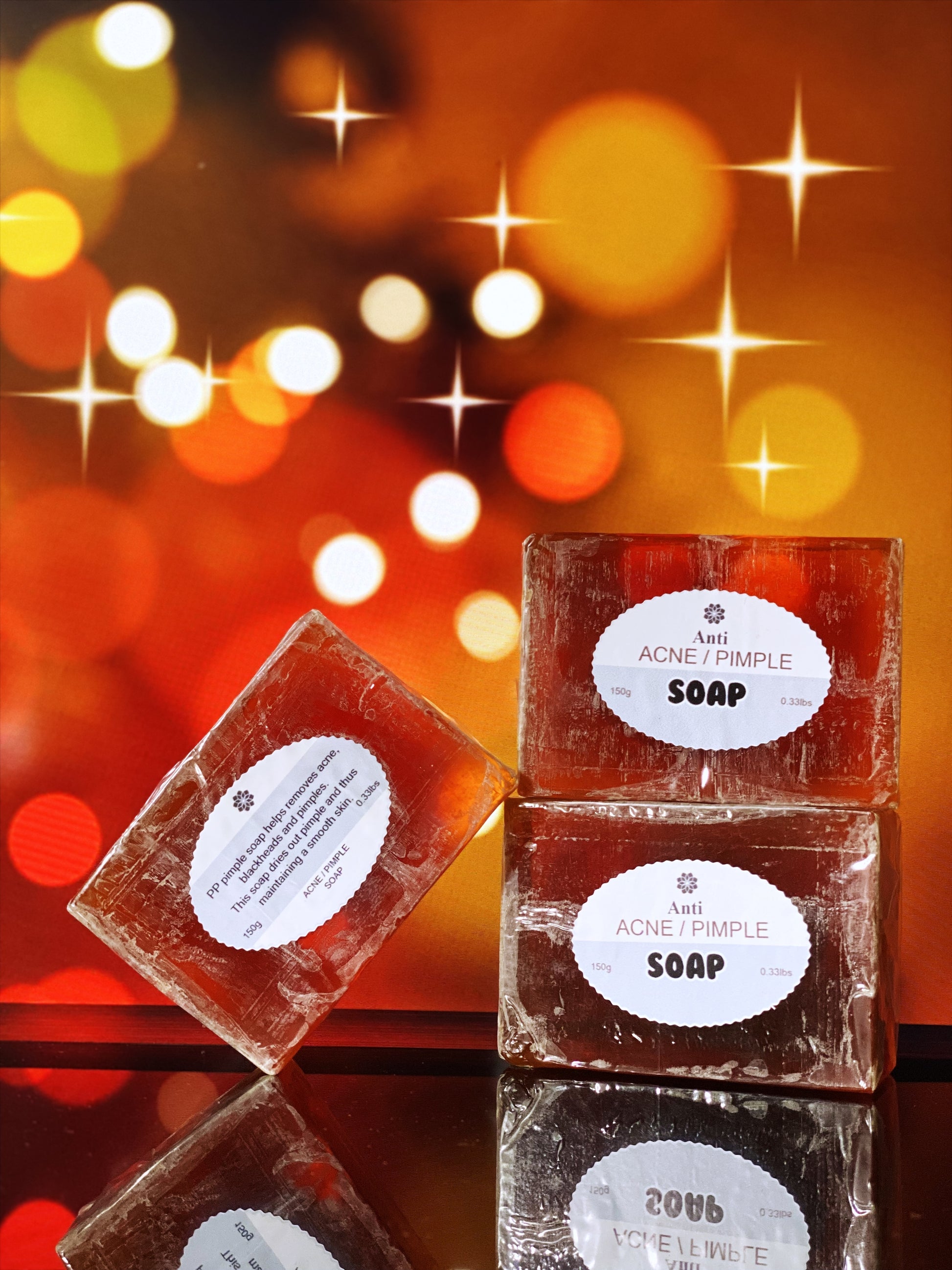 "Clear up acne with our all-natural Acne/Pimple Soap. Targeting bacteria and impurities, leave skin clear, smooth, and glowing. Say hello to a healthy complexion with "Clear Skin Delight"."